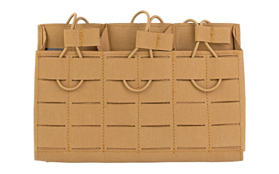 Grey Ghost Gear Compact Triple Mag Panel 5.56, Mag Pouch, Fits AR-15 Magazines, Laminate Nylon, Includes a Bungee Retention Strap to Allow for Silent Removal of your Magazine, Attaches to any MOLLE/PALS Style Webbing with the Included MALICE Clips, Coyote Brown GTG0384-14