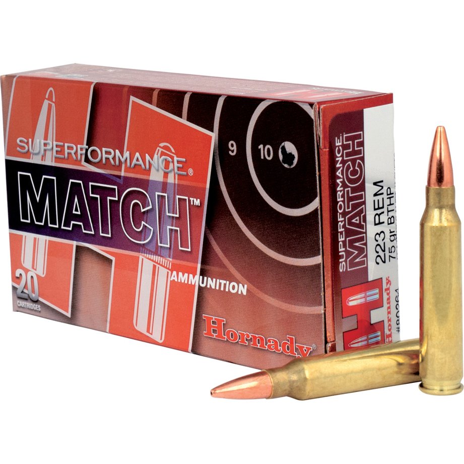 Hornady SuperFormance, 223REM, 75 Grain, Boat Tail, Hollow Point, Match, 20 Round Box 80264