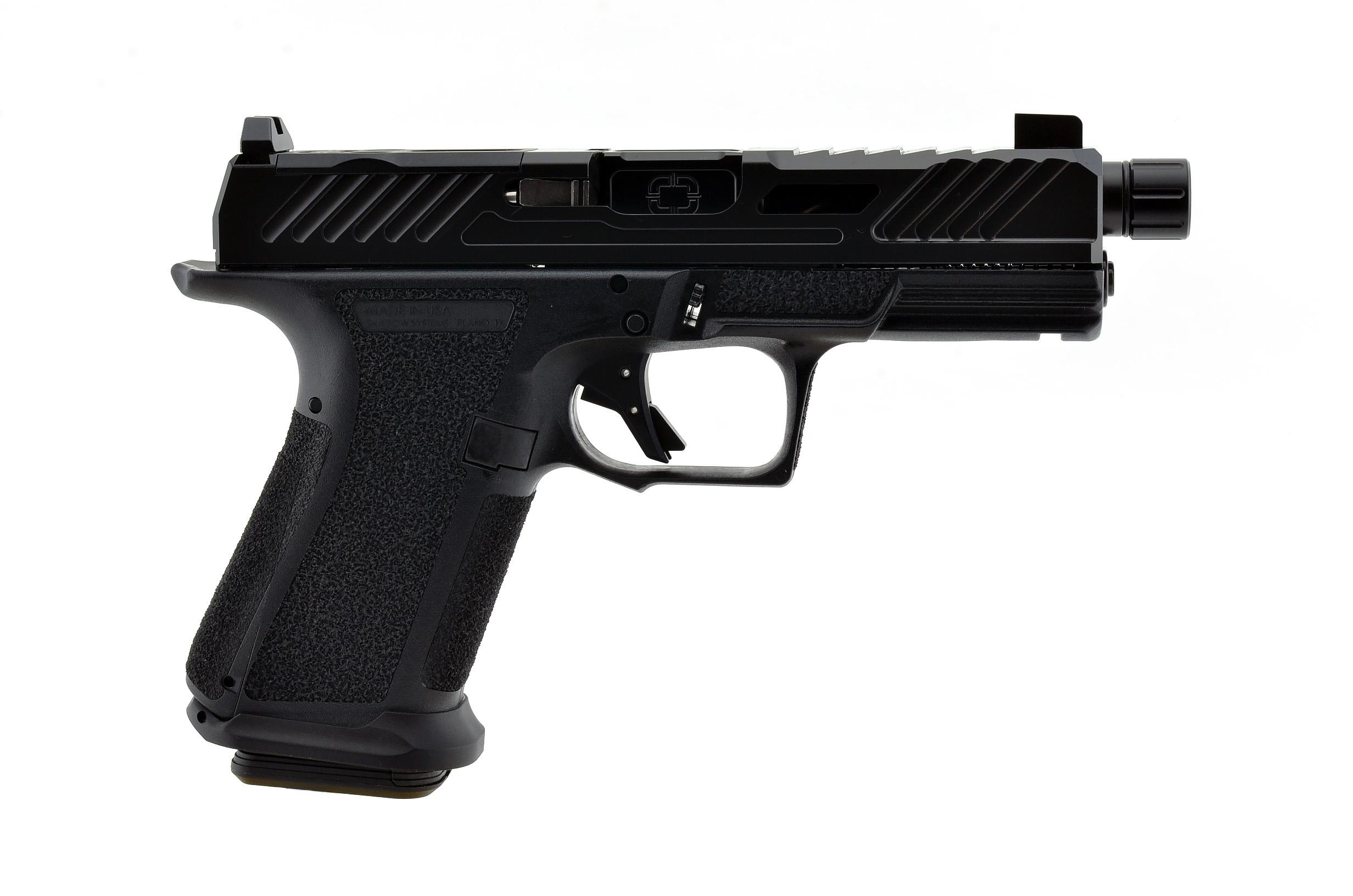 Caliber: 9mm – Action: Semi-Auto – Size: Compact – Capacity: 15+1 – Frame Color: Black – Barrel Length: 4.5 – Barrel Color: Black – Weight: 20.9 ounces – Frame Features: Aggressive grip texture – Interchangeable backstraps to fit Natural Point of Aim – Extended upswept beavertail – Recoil control ledge – Optional magwell included – Slide Features: Front & rear directional serrations – Topside directional serrations – Weight-optimizing window cut – 17-4 stainless steel – Barrel Features: Spiral-fluted match-grade barrel – 416R stainless steel – Trigger: Aluminum flat-faced trigger – 4.5-5.0 lbs trigger pull – Carry safe and drop safe – Sights: Green tritium night sight front – Black serrated rear sight – Allows lower 1/3 cowitness with most optics
